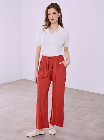 Δώσε ένταση και χαρακτήρα στις εμφανίσεις σου με γυναικείες κόκκινες παντελόνες και ζιπ κιλότ που ξεχωρίζουν για την άνετη εφαρμογή και το ζωηρό τους χρωμα. Ιδανικά για casual ή πιο επίσημα looks, αναδεικνύουν τη σιλουέτα και προσφέρουν δυναμικό στυλ σε κάθε εμφάνιση. Συνδύασέ τα με ουδέτερα tops ή πουκάμισα από τη συλλογή μας για ισορροπημένα και κομψά σύνολα.